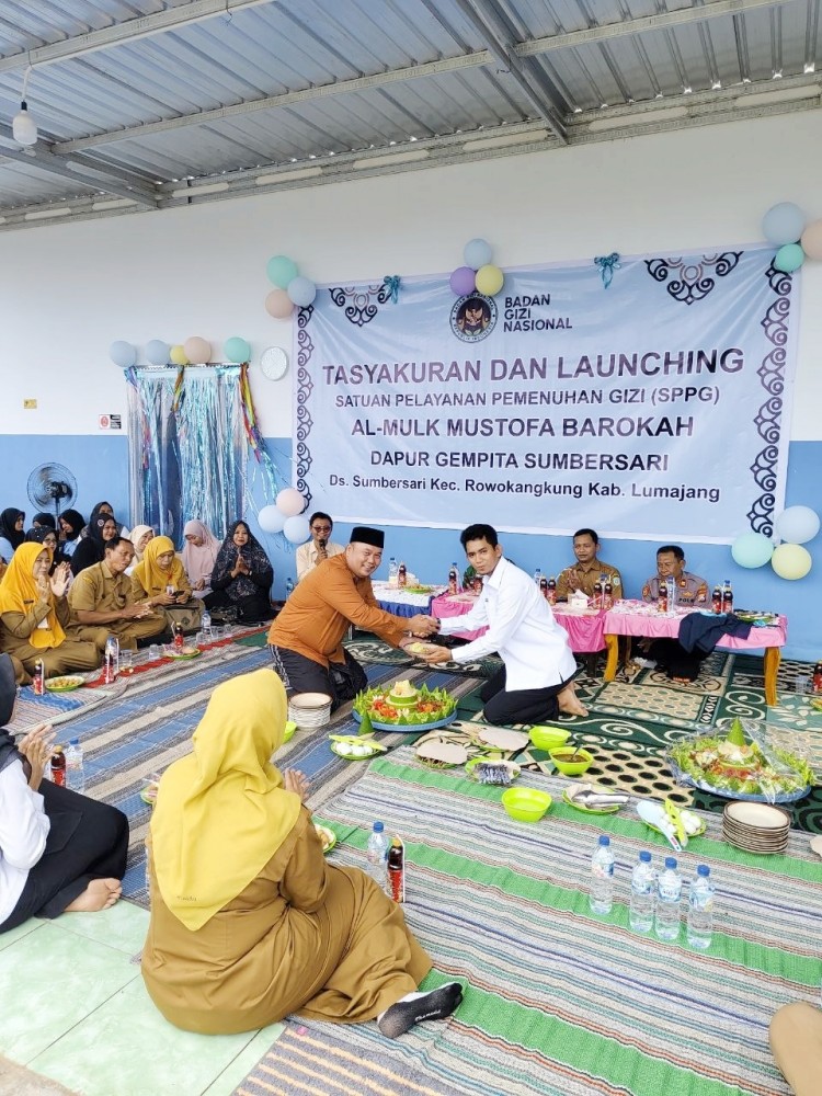 KIM SUMBERSARI- Suasana penuh khidmat dan rasa syukur menyelimuti kegiatan tasyakuran dan launching SPPG Al-Mulk Mustofa Barokah dengan meriah. Senin (27/04/2026).